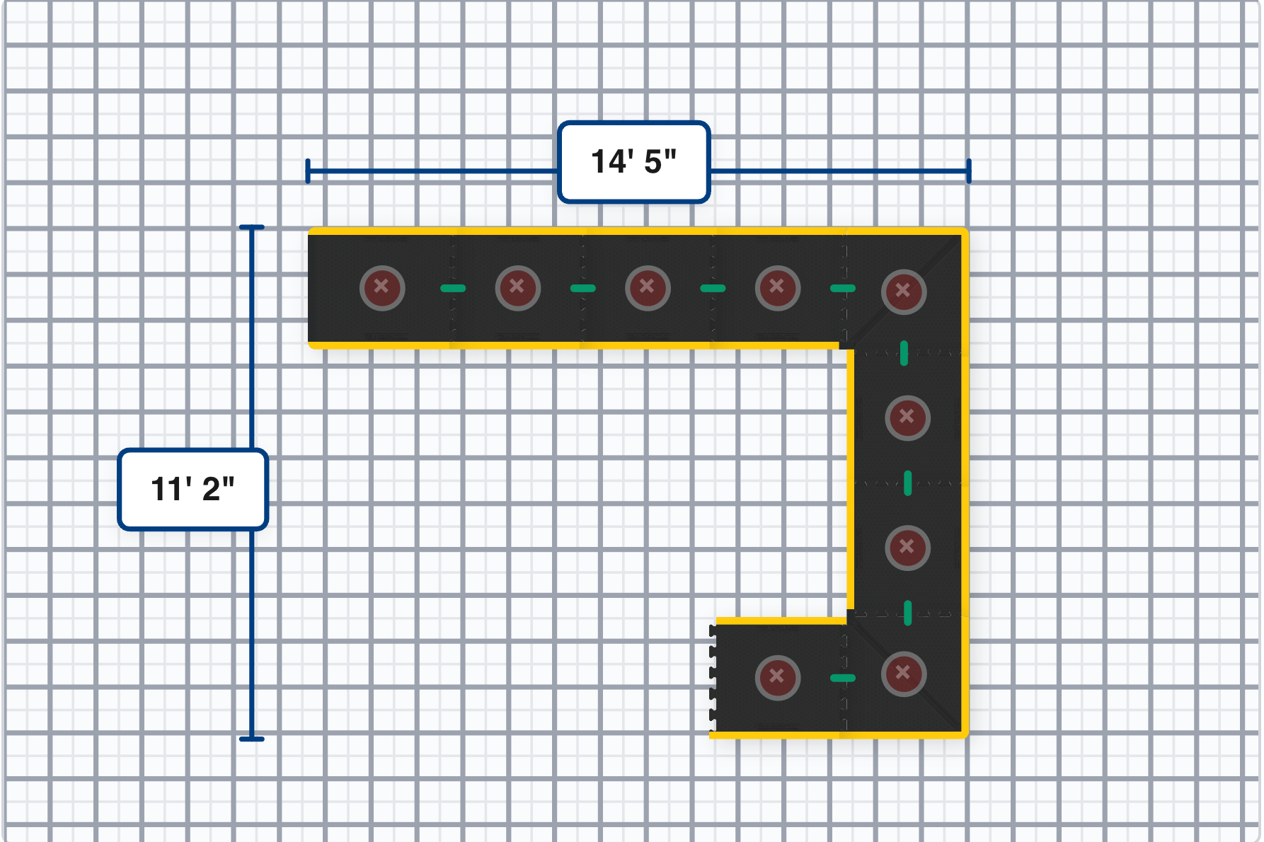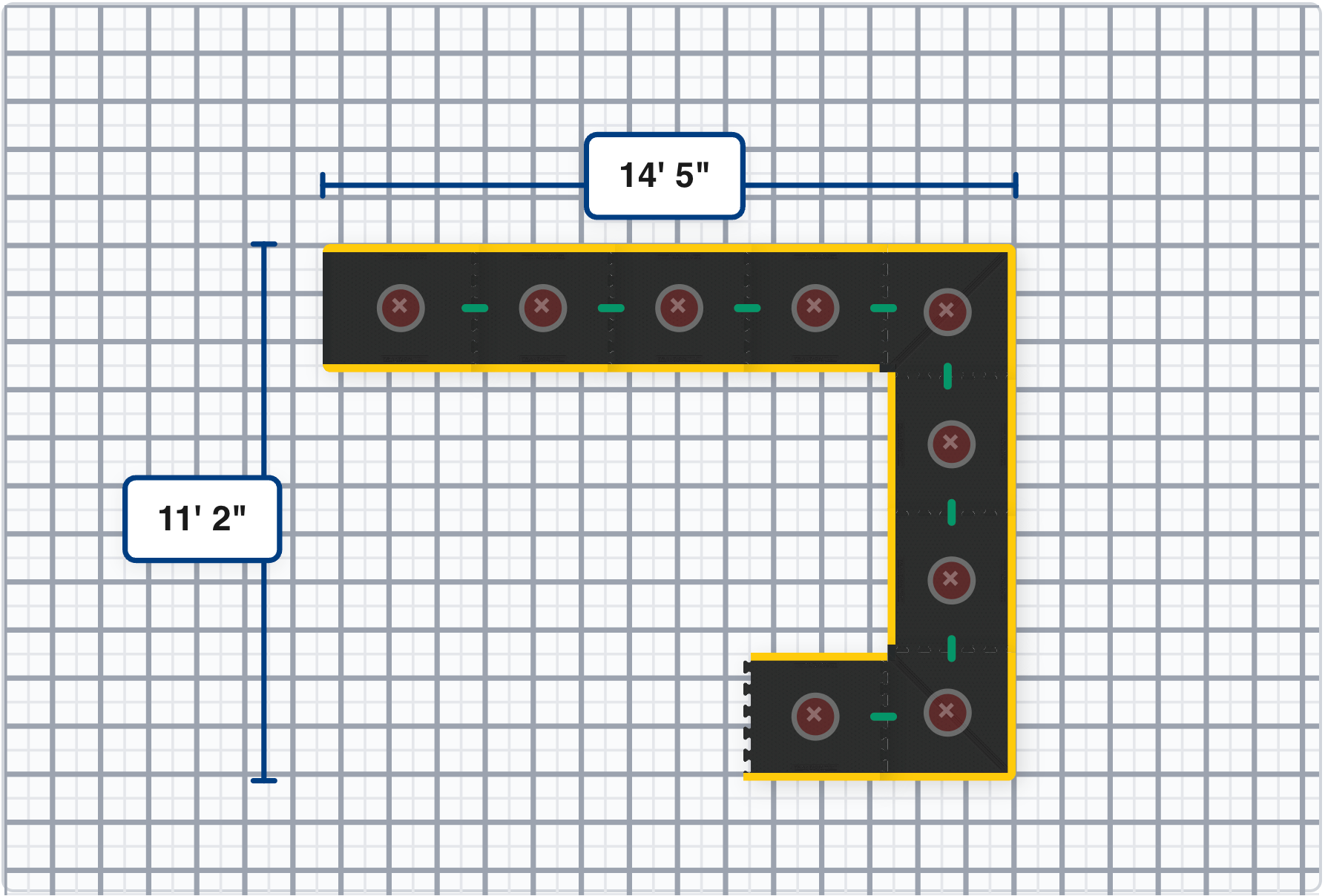 The innovative X-Pattern was crafted to accommodate a wide range of extension possibilities. It is available with yellow safety borders and can be extended to fit your space.